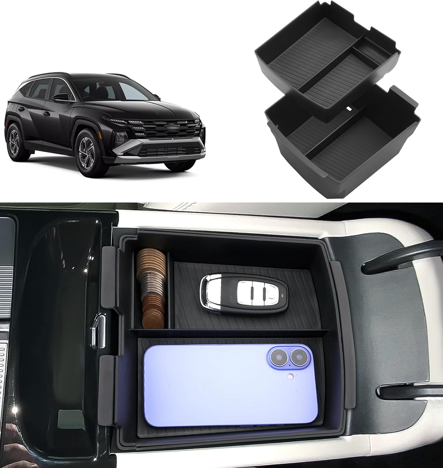 ✔ Clear space division to maintain your 2025 Tucson heart console tray organized and your objects at your fingertips